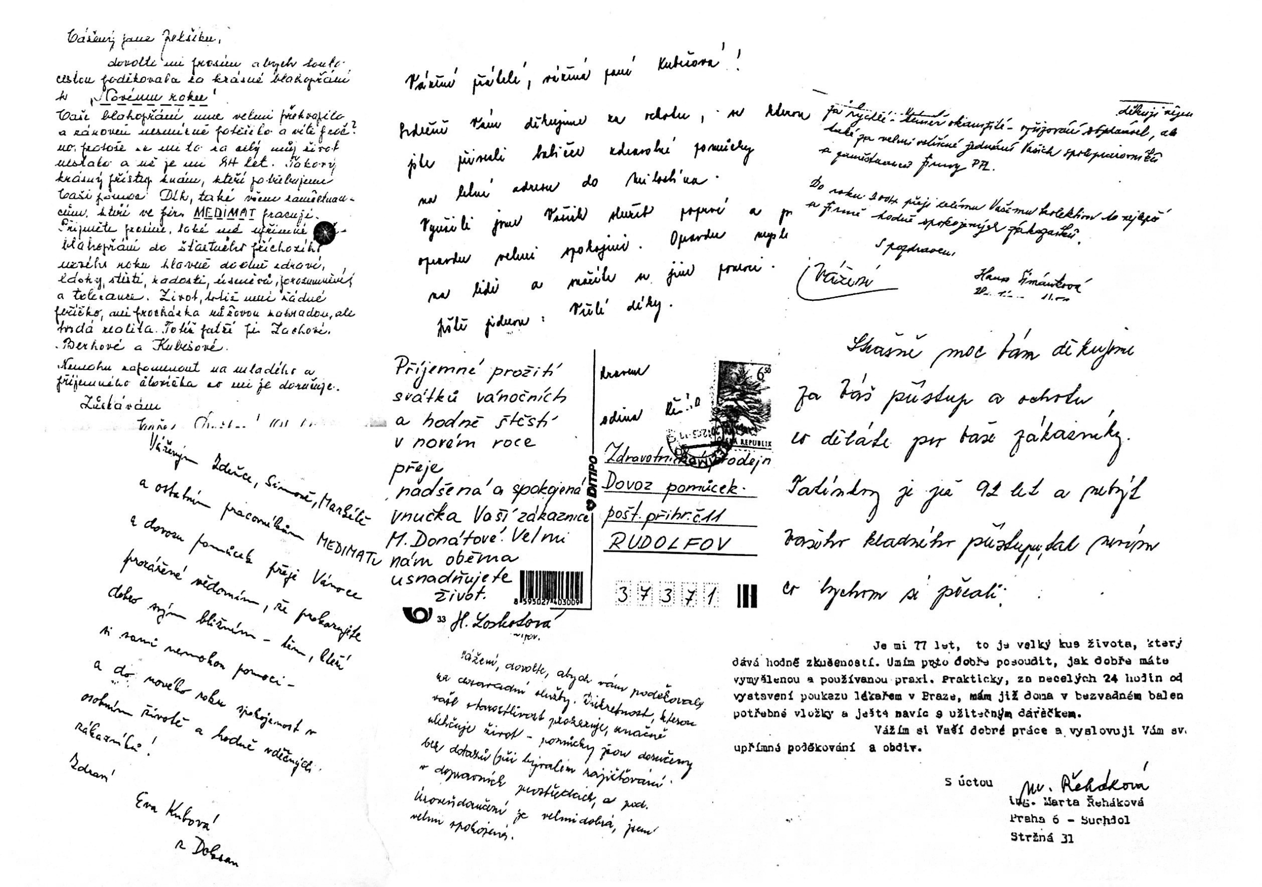 ráda bych touto cestou poděkovala celé společnosti Medimat za dlouholetou a perfektní spolupráci. Nejprve jako sestra v ordinaci, v současné době jako pečující o osobu blízkou. Kdykoli potřebuji – cokoli – řešit, poradit, pomoci i jiným, v podobné situaci, vždy jde o profesionální a přitom lidské jednání. Když se nemohu dovolat, firma mi zavolá zpět. Poradí velikosti, čísla kódu pro pojišťovnu i množství.